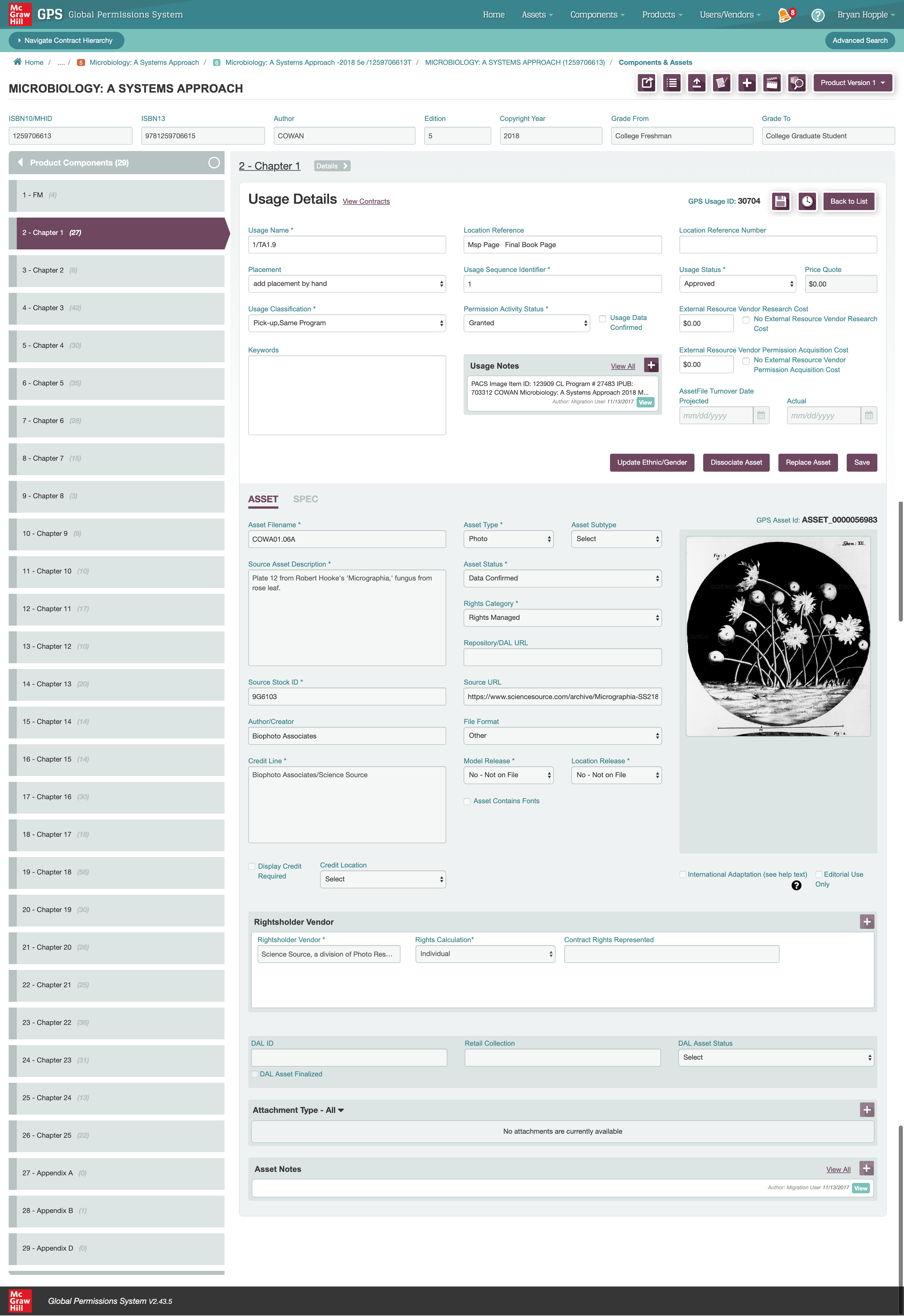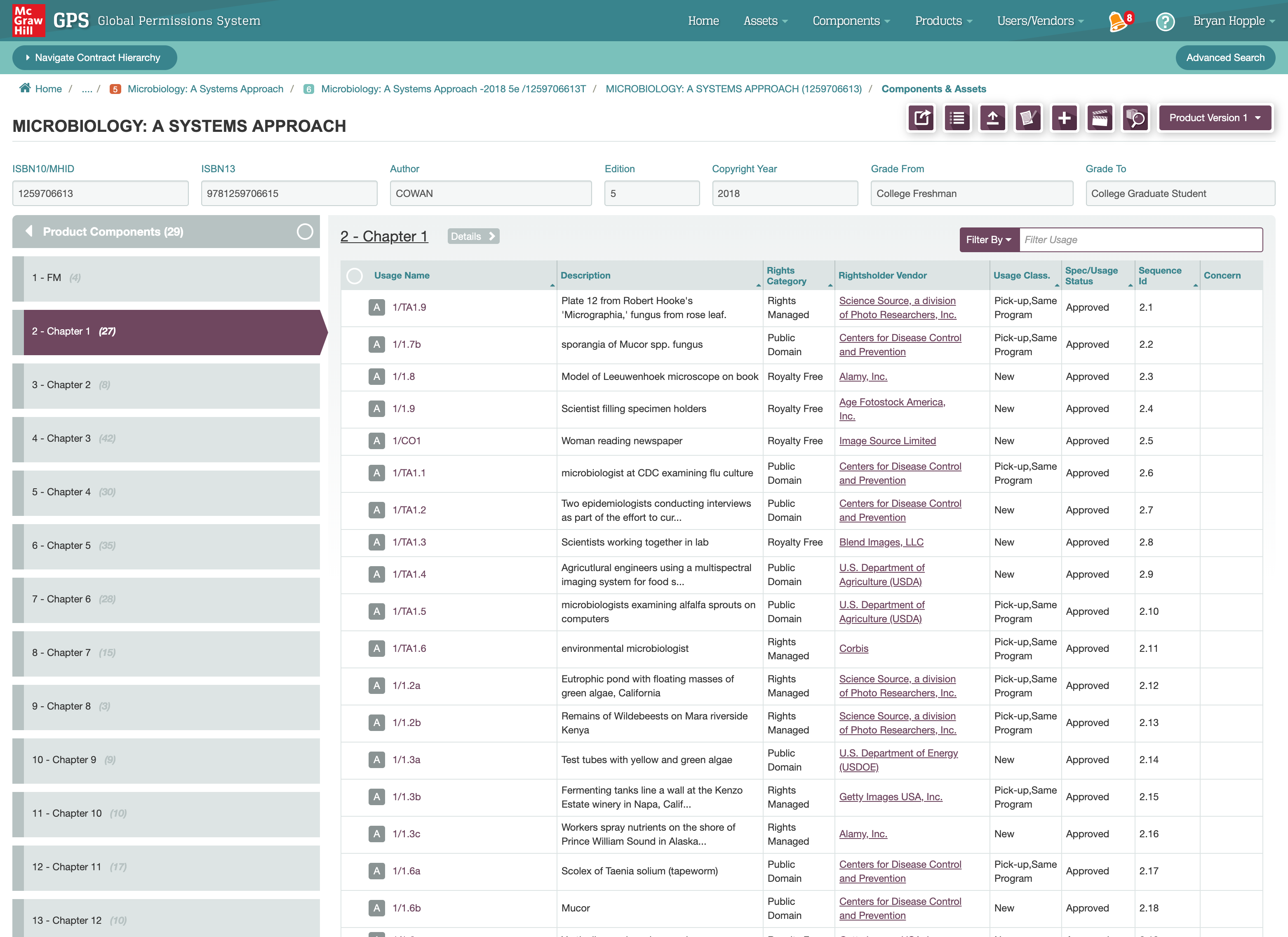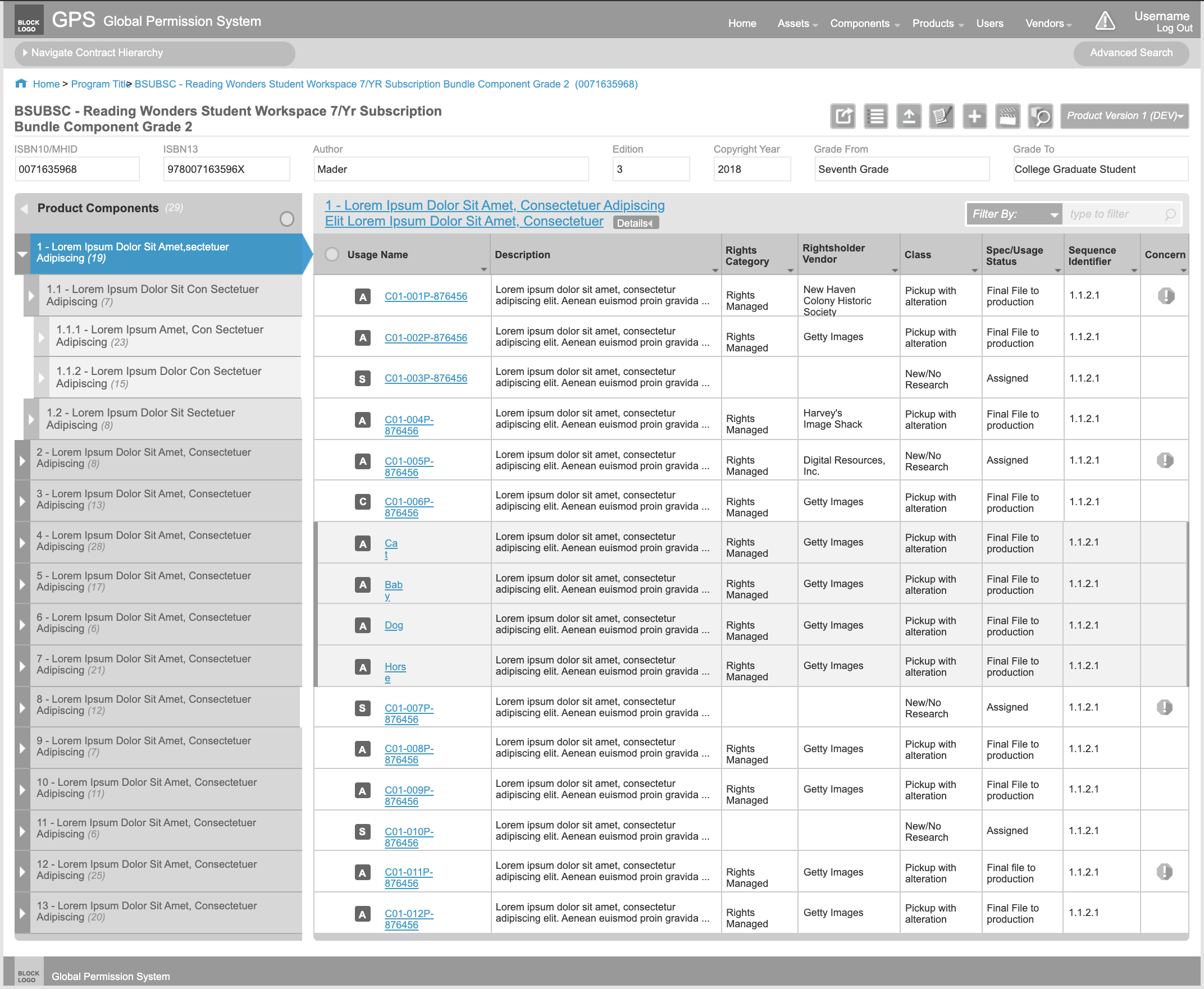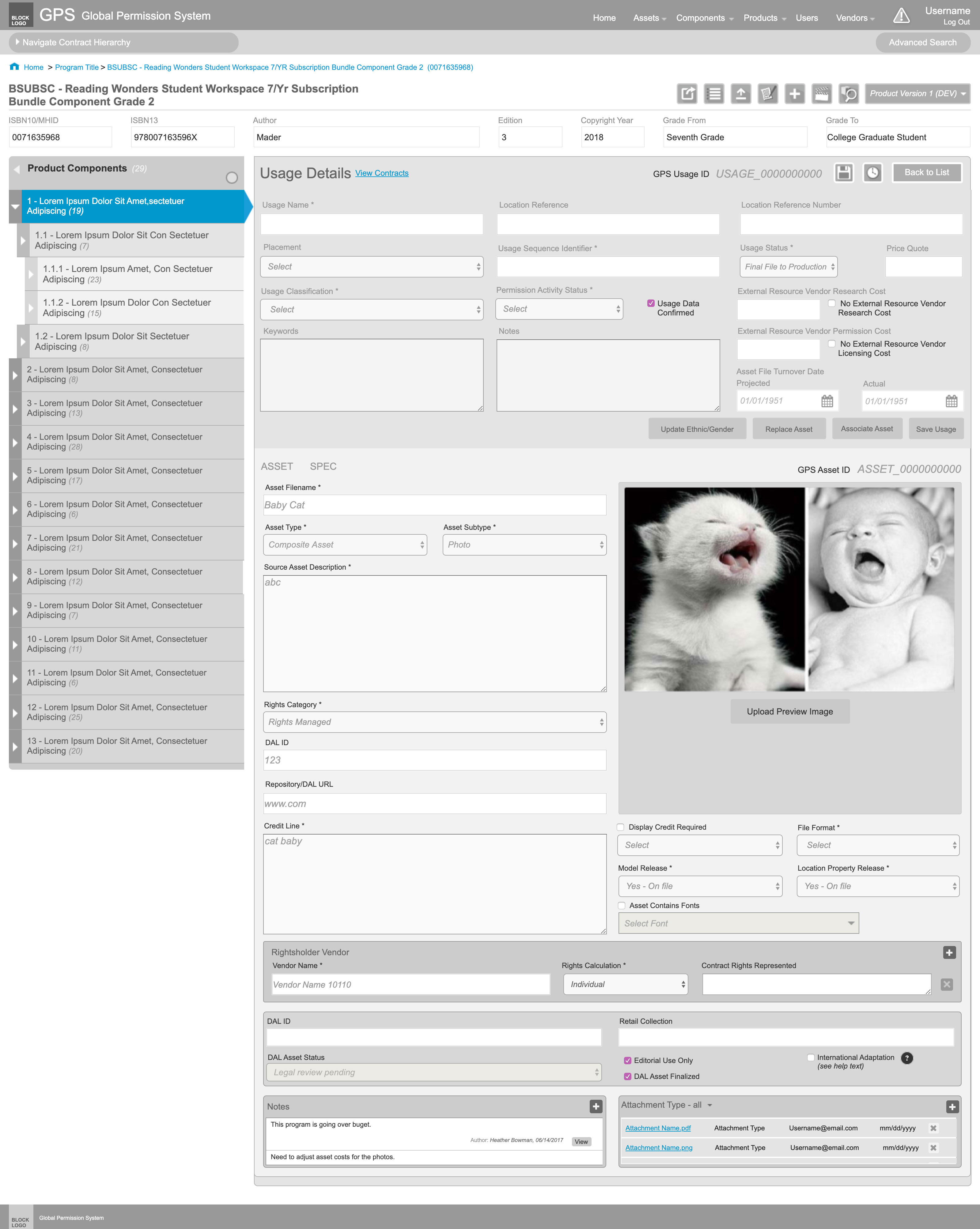 The company required a custom solution for managing and monitoring contract agreement rights for all intellectual property assets (i.e. photos, art, video, audio, font, and text assets) used in McGraw Hill products globally and for aligning divergent business processes among various divisions of the organization. I was brought on in the early stages of development to plan user flows, provide visual design direction and guide the overall user experience.